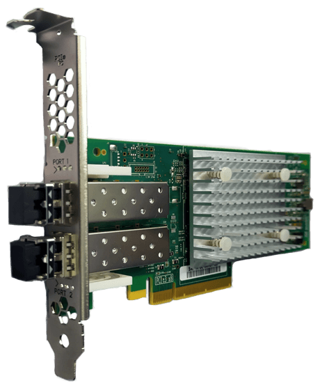 << Networking Networking Switches Networking Adapters Cables Transceivers Networking Adapter CardsCompatibility Matrices:UltraStandardMicroLPGrandTwin IOSIOMAIOMCables & Transceivers Adapter Type: - Any -1G Ethernet10G Ethernet25G Ethernet100G Ethernet200G Ethernet400G EthernetInfiniBandFibre ChannelOmni-Path Form Factor: - Any -AIOMSIOMUIOMicroLPStandard PCI-EProprietary AOC-LPE36002-M64 Key FeaturesStandard Low-profile Broadcom (Emulex) 64Gb Fibre Channel card with 2x SFP+ portsInterface: PCIe 4.0 x8Port: 2 SFP+ ports with transceivers installedSpeed: 64GFC AOC-QLE2742SR Key FeaturesStandard Low-profile QLogic 32Gb Fibre Channel card with 2x SFP+ portsInterface: PCI-E 3.0 x8Port: 2 SFP+ ports with transceivers installedSpeed: 32Gbps per port AOC-LPE32000-M2 Key FeaturesStandard Low-profile Broadcom (Emulex) 32Gb Fibre Channel card with 1x SFP+ portInterface: PCI-E 3.0 x 8Port: 1 SFP+ port with a transceiver installedSpeed: 32GFC AOC-LPE35002-M2 Key FeaturesStandard Low-profile Broadcom (Emulex) 32Gb Fibre Channel card with 2x SFP+ portsInterface: PCI-E 4.0 x 8Port: 2 SFP+ ports with transceivers installedSpeed: 32GFC (Upgradeable to 64 GFC) AOC-LPE32002-M2 Key FeaturesStandard Low-profile Broadcom (Emulex) 32Gb Fibre Channel card with 2x SFP+ portsInterface: PCI-E 3.0 x8Port: 2 SFP+ ports with transceivers installedSpeed: 32GFC AOC-LPE31002-M6 Key FeaturesStandard Low-profile Broadcom (Emulex) 16Gb Fibre Channel card with 2x SFP+ portInterface: PCI-E 3.0 x8Port: 2 SFP+ ports with transceivers installedSpeed: 16GFC (Upgradeable to 32GFC)