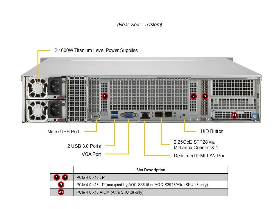 4. 2x 25Gb LAN SFP28 Ports via Mellanox ConnectX®-4 Lx EN Controller