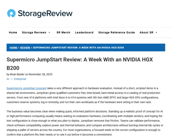 Supermicro’s JumpStart Program provided us with early access to their latest GPU systems to test and evaluate, enabling us to explore their potential for delivering enhanced solutions to our customers.