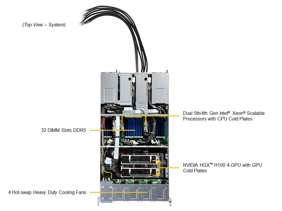 DP Intel 2U liquid-cooled system with NVIDIA HGX™ H100 4-GPU or H200 4-GPU