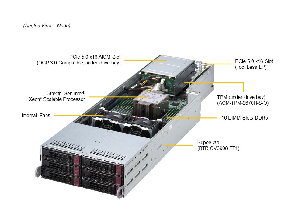 Key FeaturesFour hot-pluggable systems (nodes) in a 4U form factor. Each node supports the following: